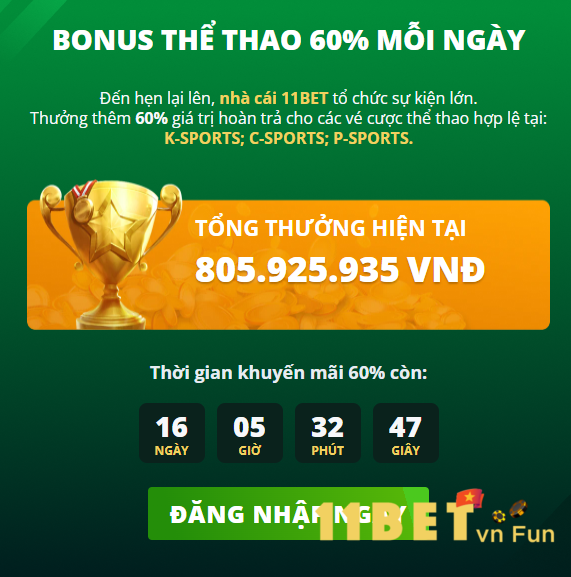 Chào đón giải bóng đá toàn châu lục quay trở lại, 11bet mở khuyến mãi cực lớn dành cho các con dân nghiện cá độ bóng banh. Kể từ ngày 28/9 – 16/10/2023, 11Bet bnous thể thao mỗi ngày +60%, hoàn trả vô tận. Điều kiện nhận thưởng Tham gia cược thể thao ngay hôm […]